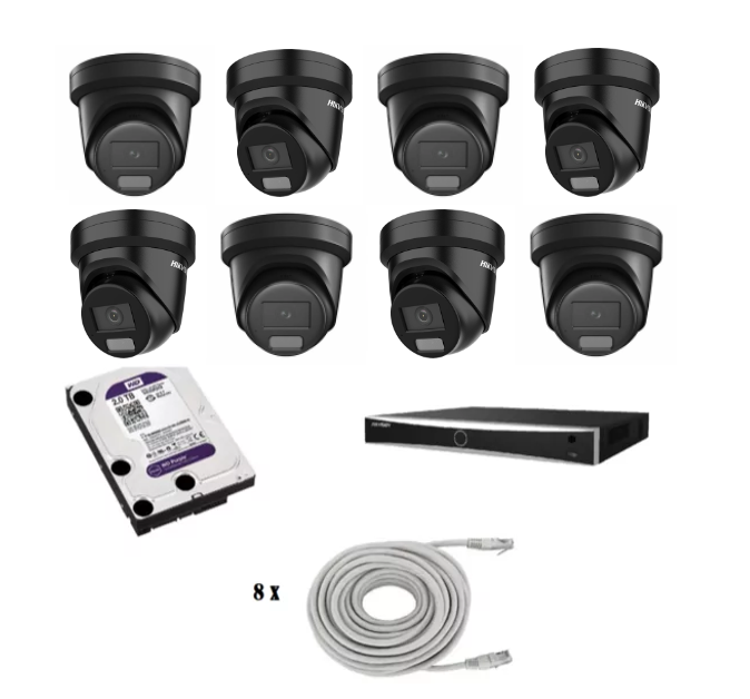 Deze set bevat ook de Hikvision DS-7608NXI-K2/8P Netwerkvideorecorder.