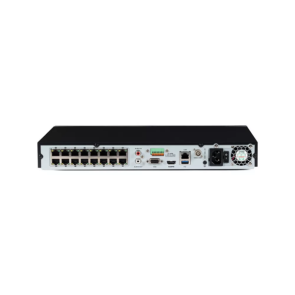 Deze recorder combineert intelligente analysefuncties, gezichtsherkenning en perimeterbeveiliging met een geïntegreerde 16-poort PoE-switch. Hierdoor sluit je IP-camera’s direct aan zonder extra netwerkapparatuur.